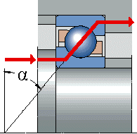The axial load carrying capacity of angular contact ball bearings increases with increasing contact angle. The contact angle a is defined as the angle between the line joining the points of contact of the ball and the raceways in the radial plane, along which the load is transmitted from one raceway to another, and a line perpendicular to the bearing axis.