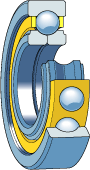 Angular contact ball bearings have raceways in the inner and outer rings that are displaced with respect to each other in the direction of the bearing axis. This means that they are designed to accommodate combined loads, i.e. simultaneously acting radial and axial loads.