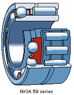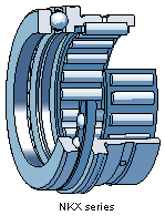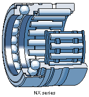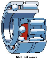 Needle roller/angular contact ball bearing, single direction