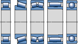 When axial space is limited, certain series of cylindrical roller bearings and deep groove ball bearings can be used for radial or combined loads respectively as well as the various types of combined needle roller bearings.