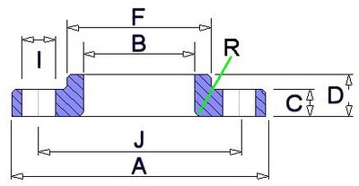 | Units | Nominal Pipe Size | Outside Diameter | Overall Diameter | Inside Diameter | Flange Thickness (min) | Overall Length | Lap Radius | Hub Diameter | Number of Holes | Bolt Hole Diameter | PCD: Diameter of Circle of Holes | |